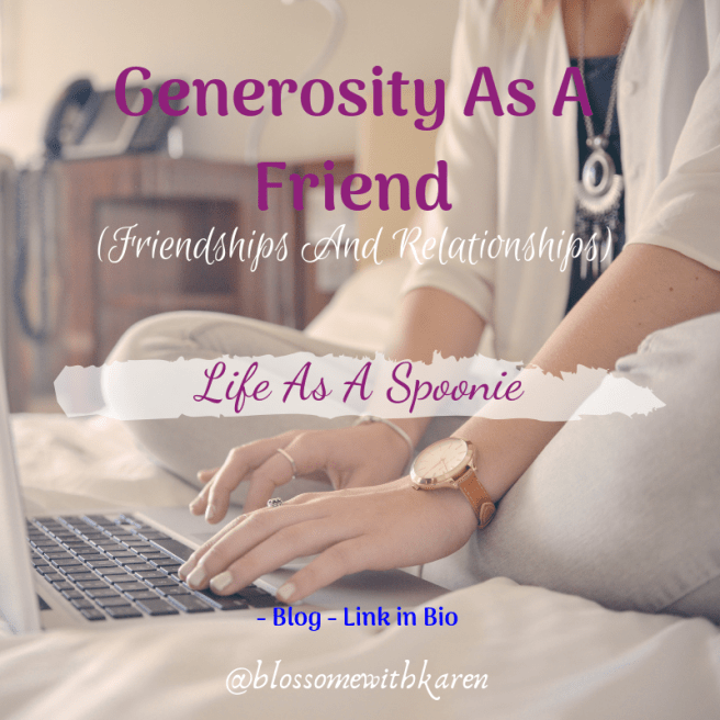 I’ve been thinking about friendships that I’ve being a part of and I find myself feeling very hurt and disappointed with the conduct of the other individual and I’ve been examining the cause of my frustrations and unhappiness and in so doing, generosity has come up over and over again, hence me writing about it.